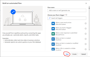 Go to (My Flows > New > Automated-from blank > Skip)