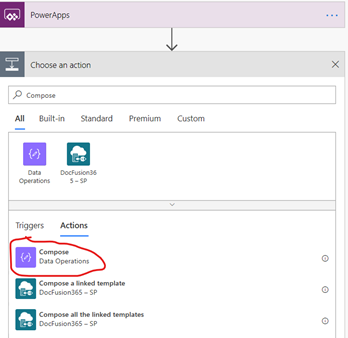 Click (+New step), it will add another search box, triggers and action like before. Search “Compose” and Select Compose from Actions Tab.