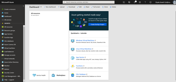 After successfully creating Microsoft Azure Instance log in to https://portal.azure.com/ with your credential. It will look like the below picture.